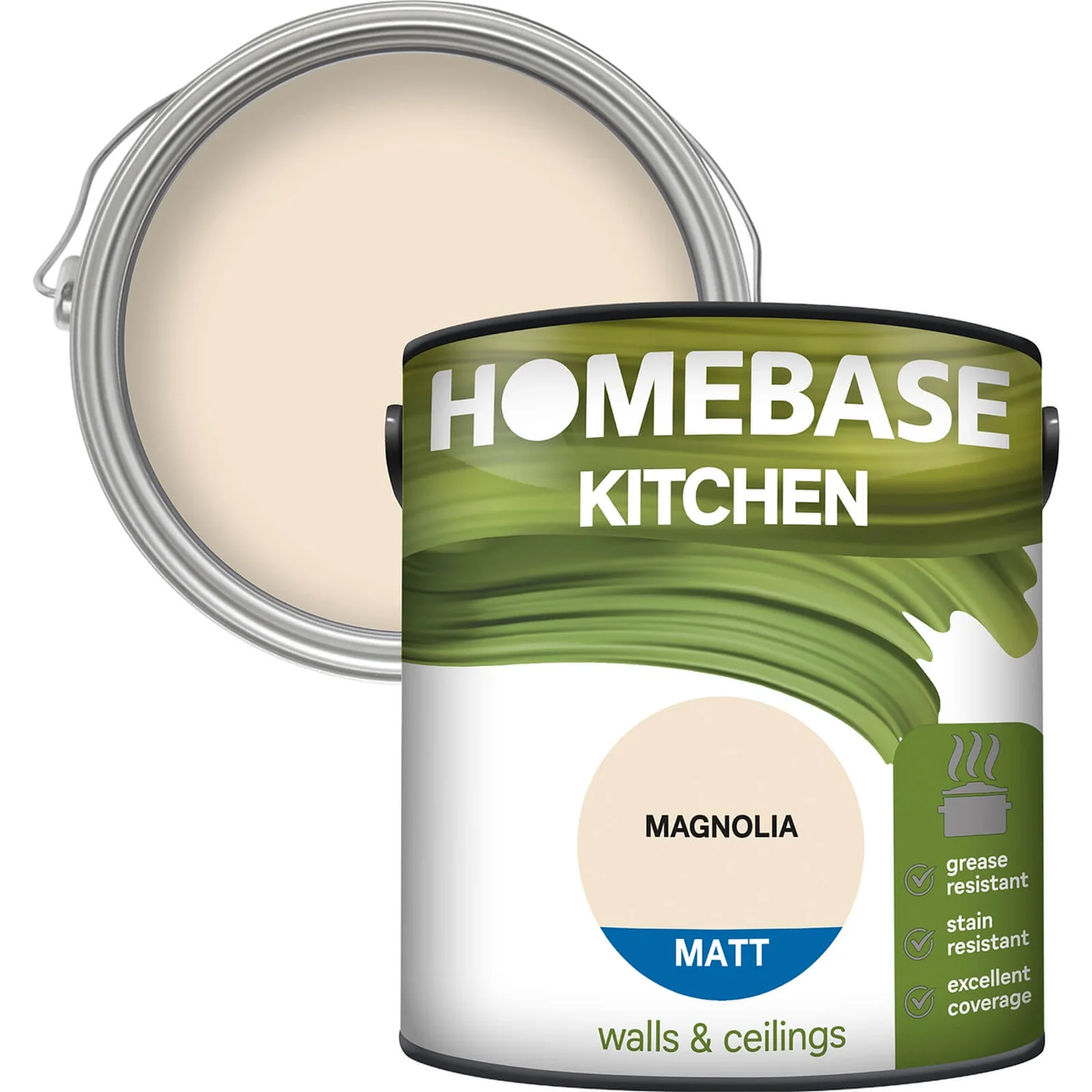 Homebase Kitchen Matt Paint is formulated to be grease and stain resistant. Offers excellent coverage.