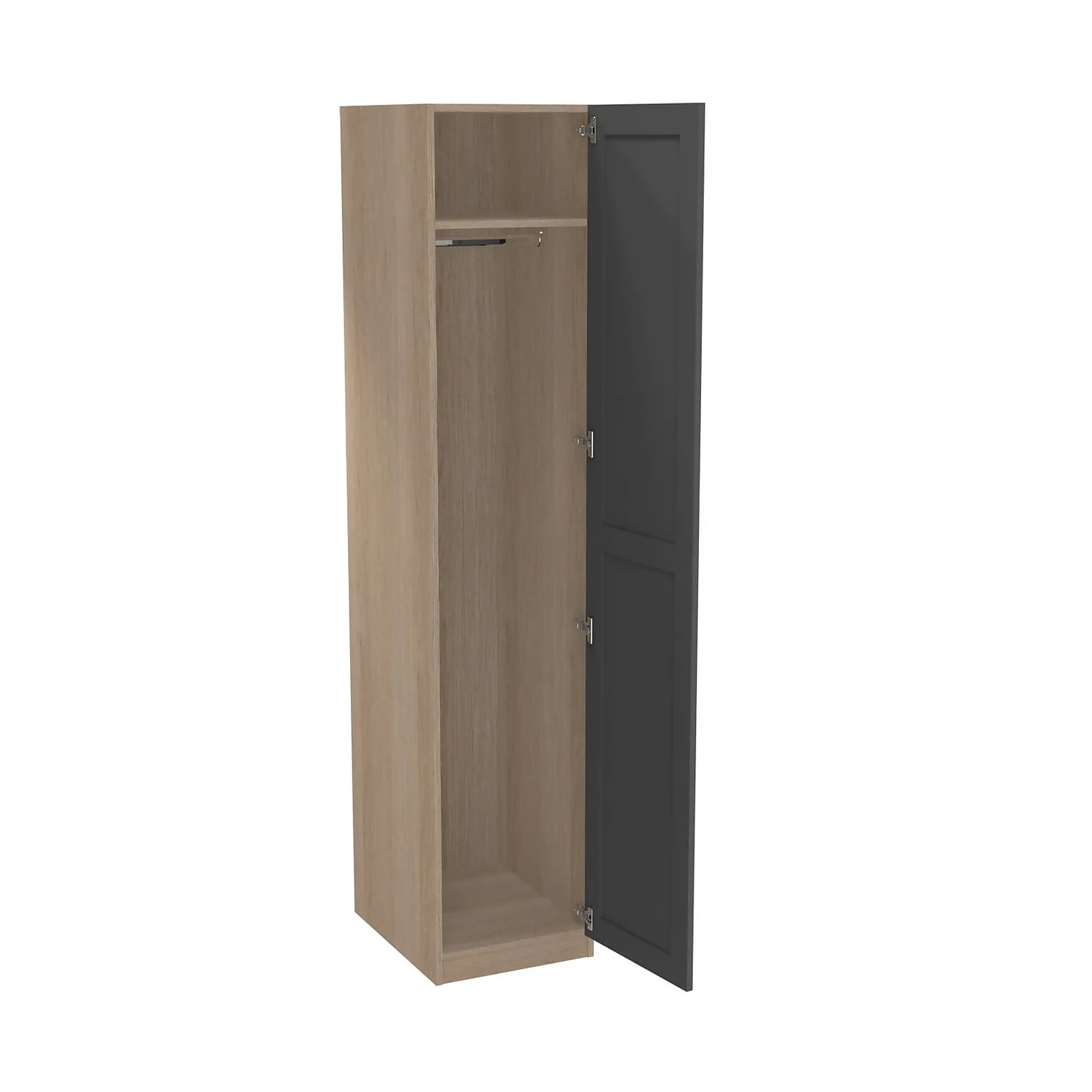 House Beautiful Realm Single Wardrobe, Oak Effect Carcass – Carbon Grey Shaker Door (W) 450mm X (H) 2196mm