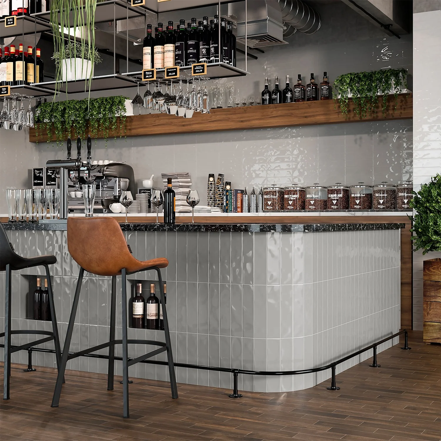 Ancien brick format tiles feature a glazed gloss coating that brings brightness and a vibrant decorative aesthetic. The shades of the Ancien Collection form the perfect setting in any room, as they provide texture and luminosity in equal parts. Ancien Grey is the perfect neutral colour that can be mixed well with other colours.
