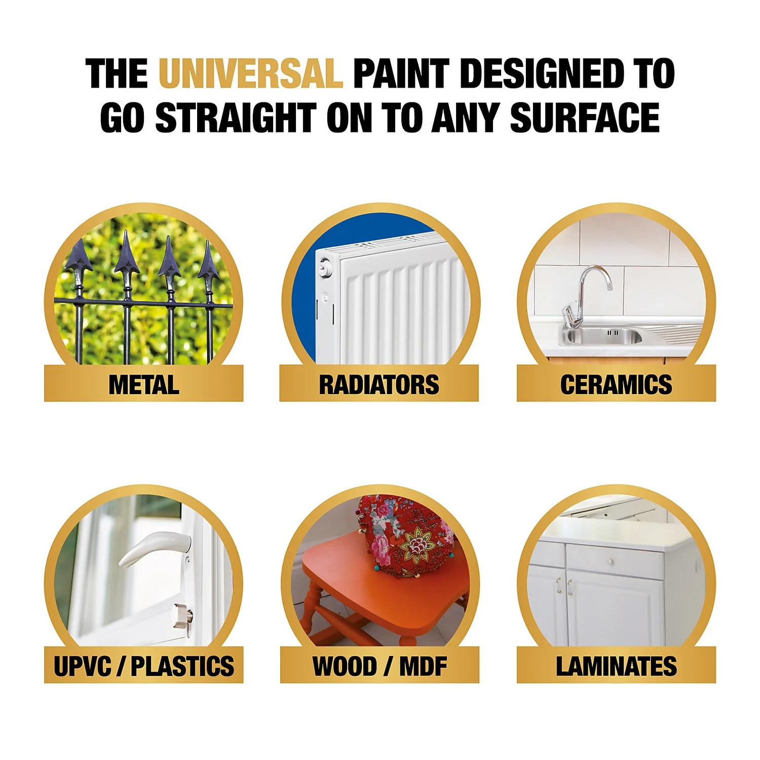 Universal All-Surface Paint is the solution to painting tricky interior and exterior surfaces Universal is both a paint and primer in one, meaning that you do not need to use a primer in most cases Universal can be applied directly to a wide range of surfaces including UPVC, wood, metal, plastics, ceramic and more.