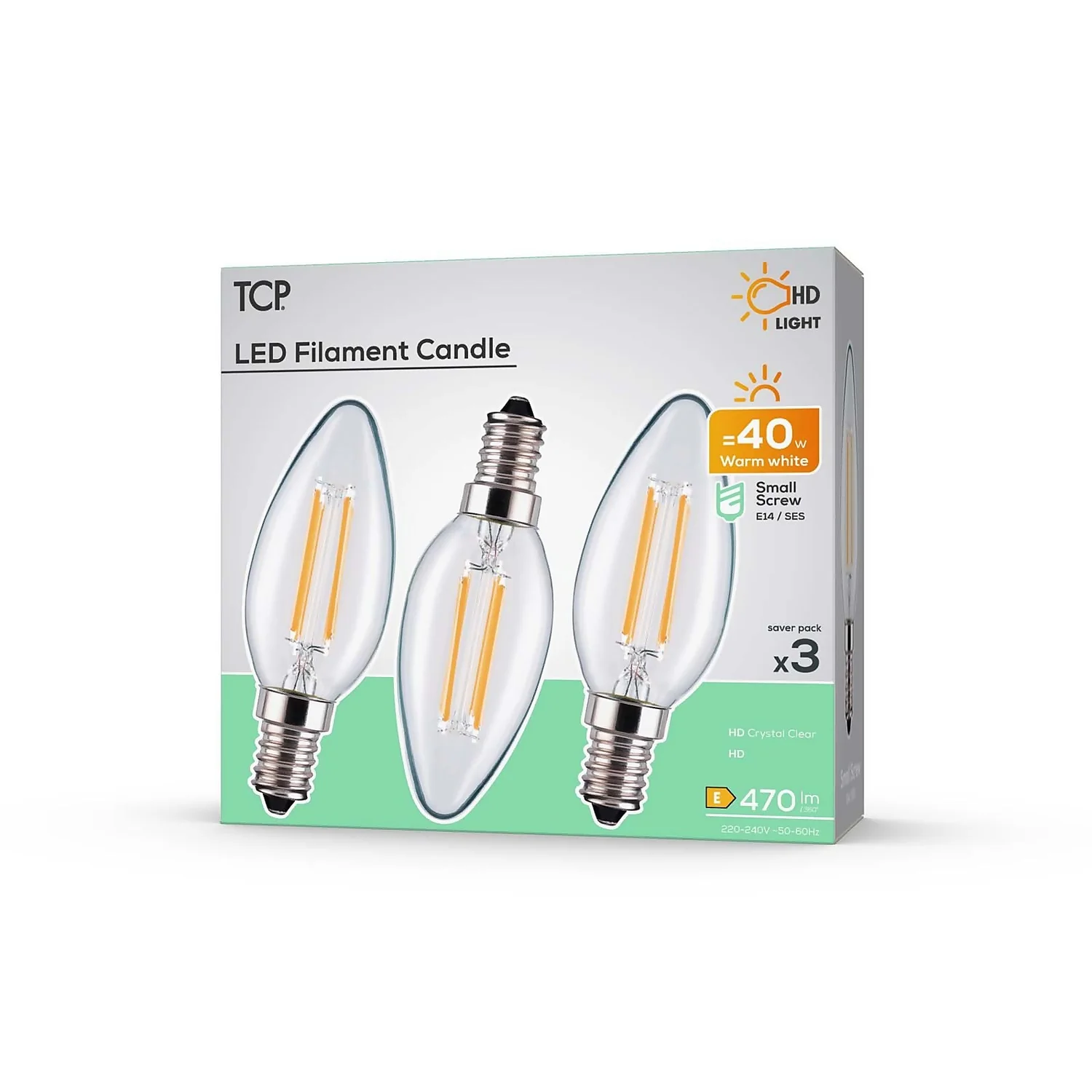 TCP LED Filament Clear Candle 4W E14 Light Bulb – 3 Pack